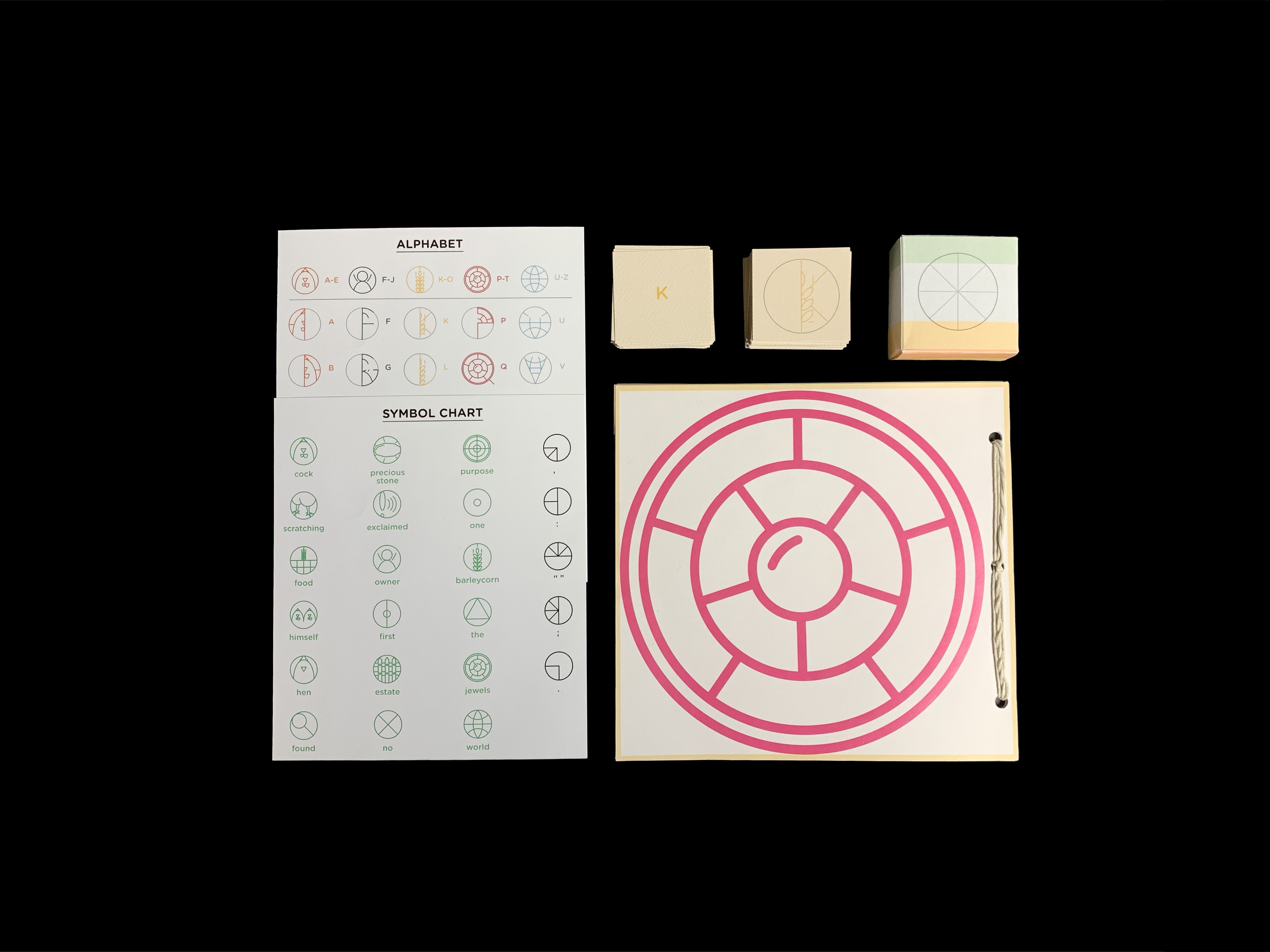 Based on the story usually for children, it is designed in a cute style. As the story is coded, an alphabet and a symbol chart are designed for decoding. Also, a deck of cards is designed for children to play with.